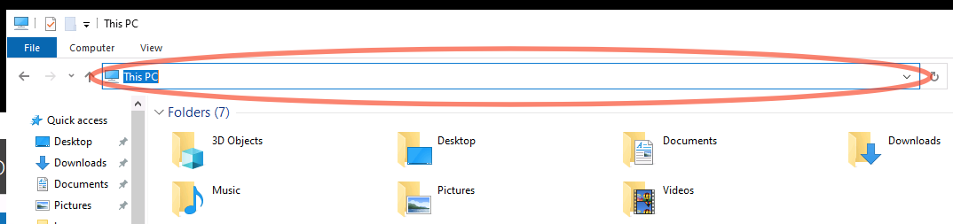 2: Click into the white filepath box on the top left/middle of File Explorer.